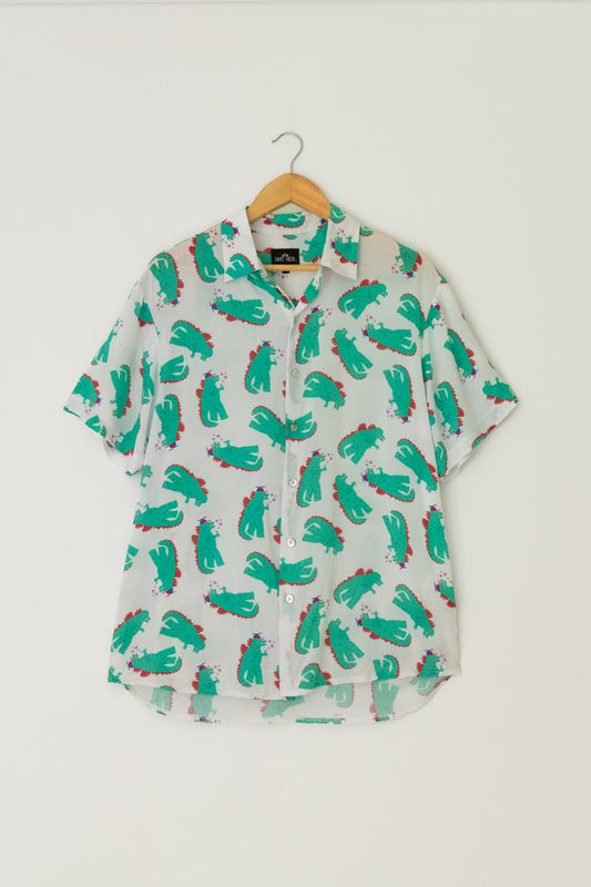 Relaxed Button Up Shirt-Godzilla